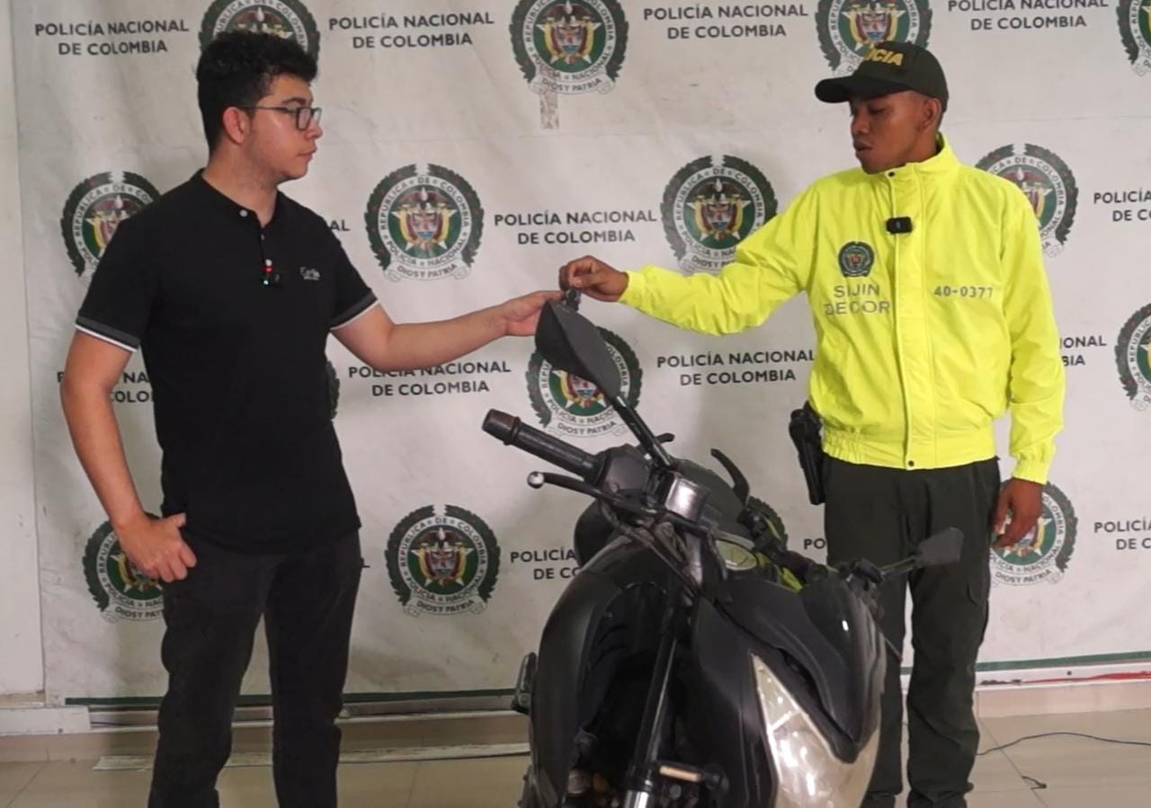 El patrullero Cristian Castillo Díaz, investigador Criminal, entregó la motocicleta a su propietario, quien agradeció a la institución por su labor y se comprometió a ser más cuidadoso en el futuro para contribuir a la seguridad. Este es un ejemplo más del compromiso de la Policía Nacional de Colombia en la lucha contra el crimen y la protección de los ciudadanos.