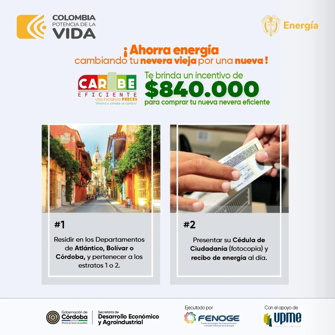 Como parte de este programa, podrás acceder a un bono de $840 mil pesos para adquirir una nevera eficiente, lo que te permitirá optimizar el consumo de energía en tu hogar y reducir significativamente tus gastos mensuales. Para hacerlo realidad, solo debes acercarte a los comercializadores aliados en Córdoba, ubicados en los siguientes lugares: BC calle 40 #3-46, Grupo Litoral Cra 6 #79-80, Diselco Cra 2 #30-41, Colventas Calle 33 #13-25.