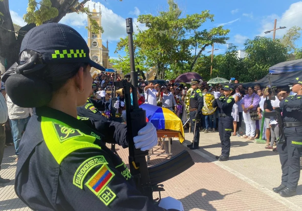La plaza pública Manuel Dimas Del Corral, en la región de la Mojana sucreña, se llenó de cientos de ciudadanos que acudieron para dar su último adiós al subintendente de la Policía, Carmelo José García Gómez. El valiente uniformado, quien perdió la vida a los 43 años, dedicando 18 de ellos al servicio de la Patria, fue asesinado en la madrugada del domingo en el corregimiento Timba, en el municipio de Buenos Aires, Cauca.